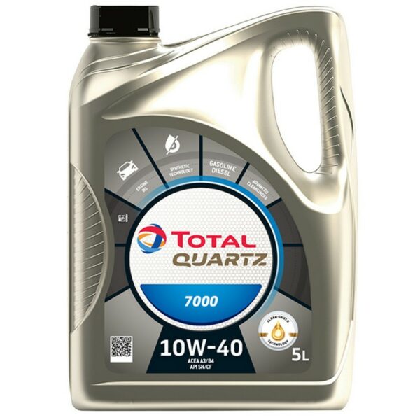 Total 7000 10W-40 je čiastočne syntetický, ľahko bežný motorový olej pre benzínové a naftové motory. Je to vysoko výkonný olej. Pôvod tovaru je Európska Únia. Znižuje mechanické poškodenia a prestoje. Polysyntetický olej vyvinutý pre bežné podmienky a mestskú premávku pre benzínové a naftové motory. Poskytuje výbornú ochranu motora a efektívne chráni proti opotrebovaniu ventilov, piestnych krúžkov, piestov, vložiek valcov, korózii a pod.