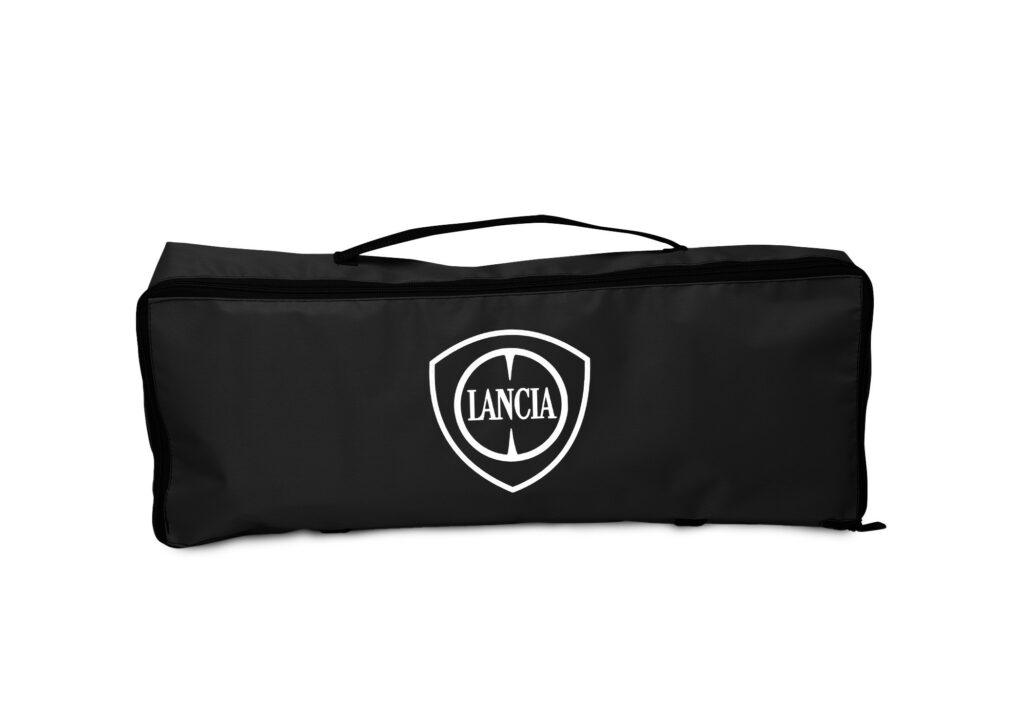 Prázdna taška povinnej výbavy s logom Lancia. Vhodná pre textilnú lekárničku, ťažné lano, výstražný trojuholník a reflexnú vestu. Na spodnej strane je taška vybavená suchým zipsom pre lepšie uchytenie v kufri auta. Materiál 100 % Polyester. Rozmery; Výška: 16 cm, dĺžka: 44 cm, Hrúbka: 7 cm.